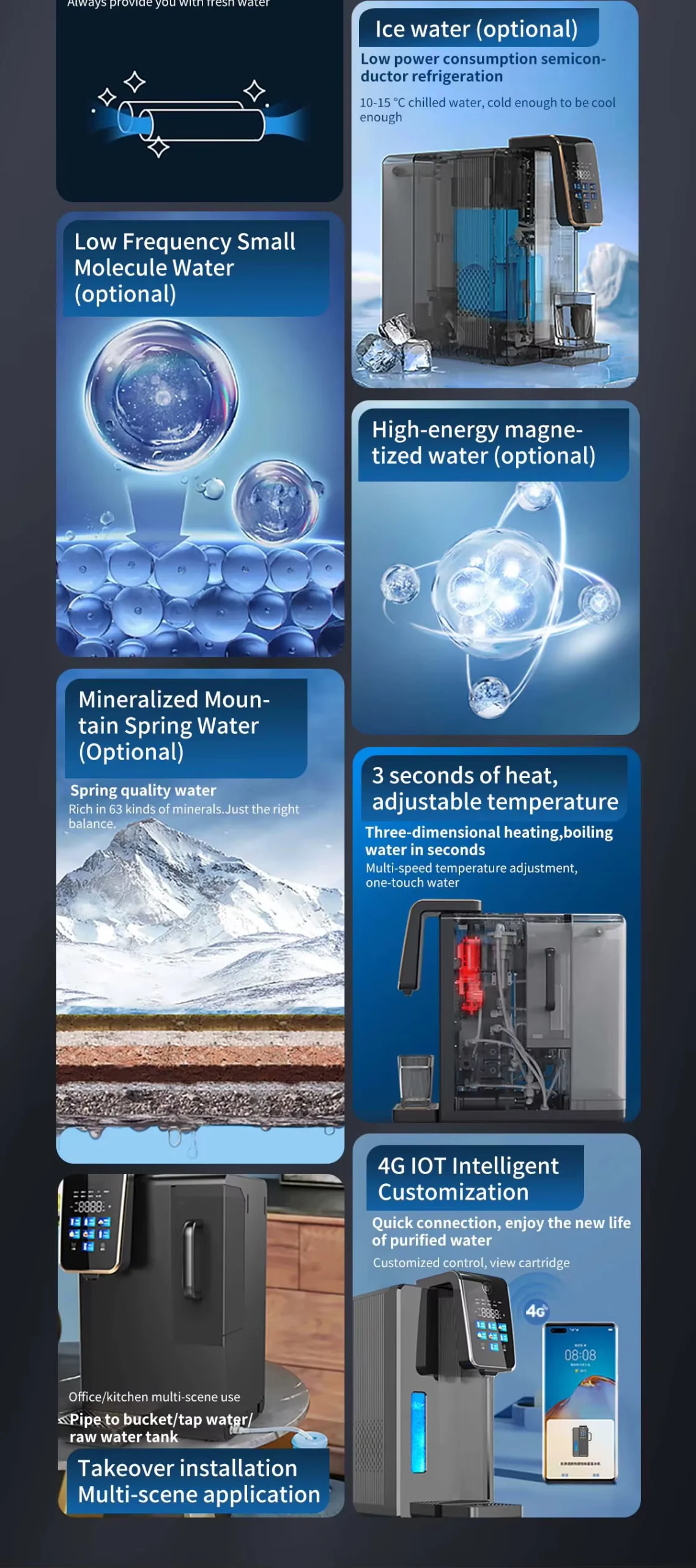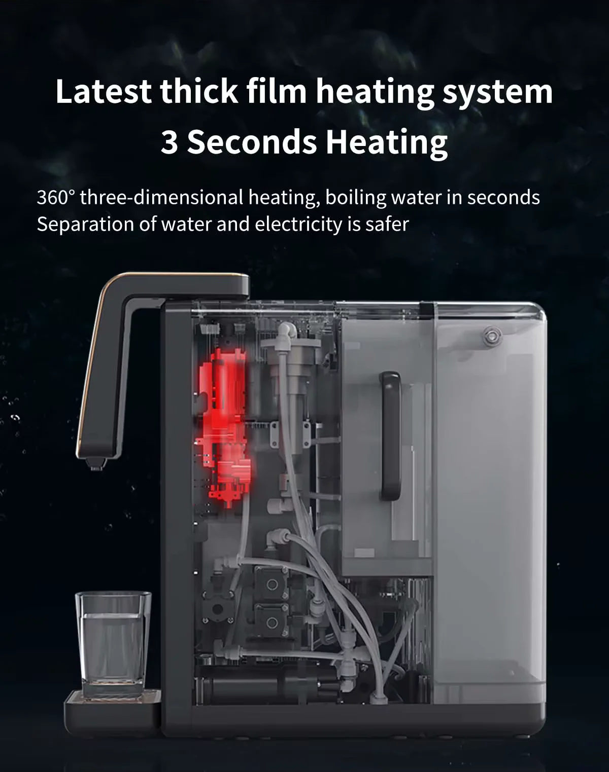 Kompakt vattenrenare med omvänd osmos och vätegenerator – ger kristallklart, hälsosamt vatten utan installation. Tar bort PFAS, klor, tungmetaller och bakterier. Perfekt för hem, kontor eller resor. Enkel att använda, engelsk display och 2 års garanti.